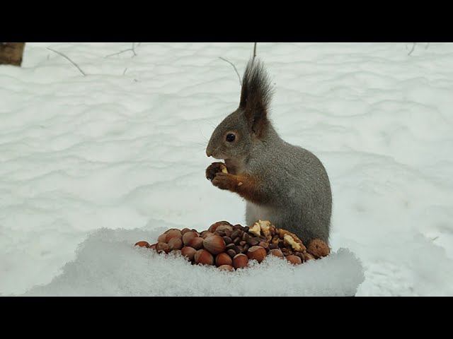 Белка на пушистом снегу