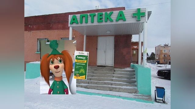 Дружок заболел и кашляет, а Лиза решила купить сироп.