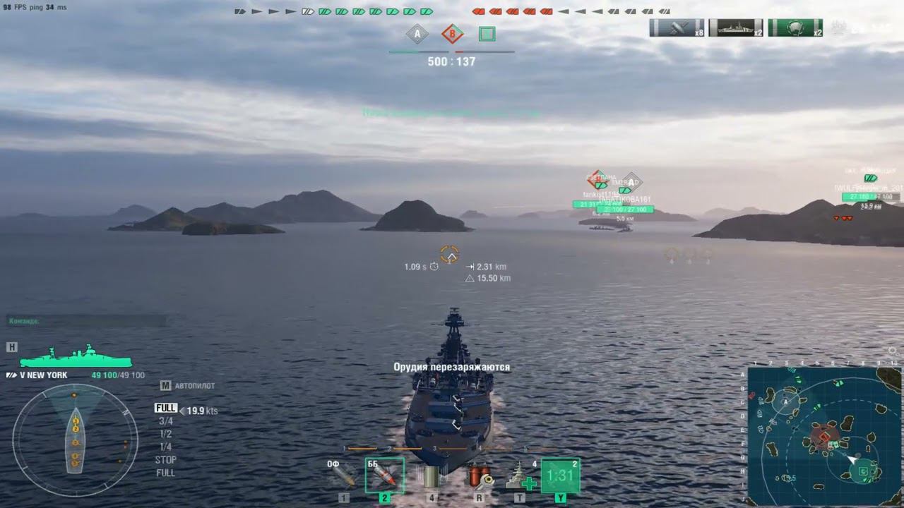 Американский линкор New York.Морской бой-1.Игра World Of Warships