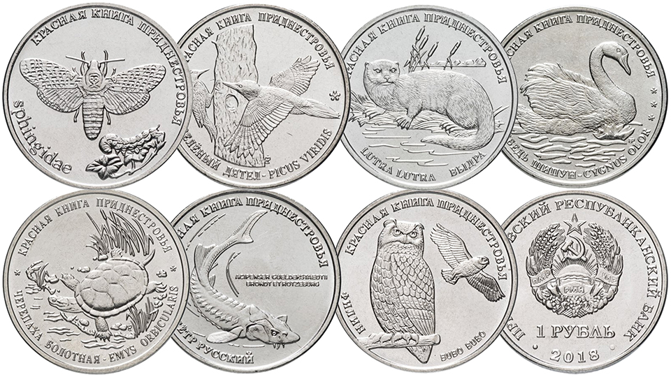 Монеты Приднестровья из серии Красная книга Приднестровья выпуска 2018 года.