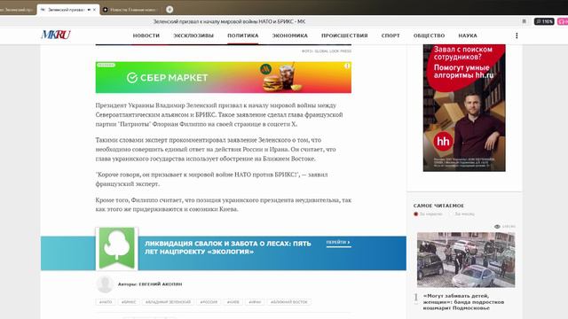 Зеленский призвал к началу мировой войны НАТО и БРИКС - МК