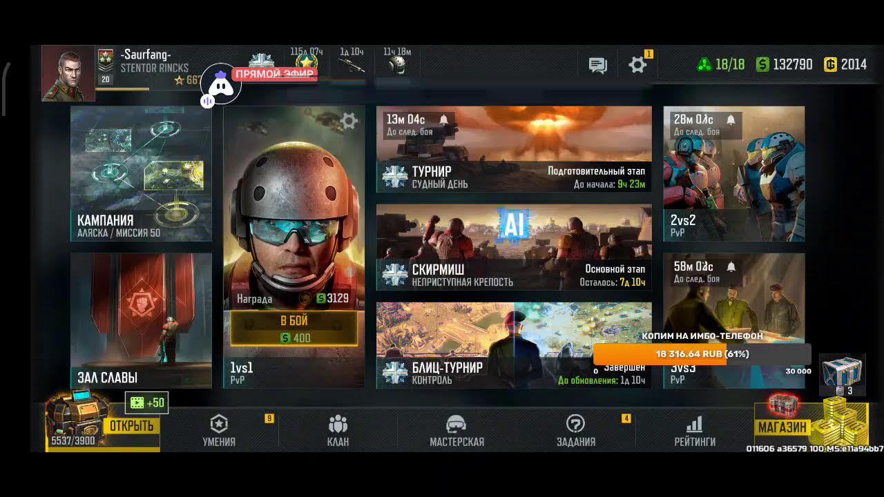 Поддержка автора по ссылке: https://www.donationalerts.com/r/rincks райффазен банк 2200 3005 1695 5281 телеграм группа для подписчиков https://t.me/art_of_war_3_rincks_sopra Продлить стрим:300 руб Смена фракции:200 руб Тренировка:300 руб 2х2: по совести Покажи кач: миллион рублей Закончить стрим:1000 руб Так же можно заказать челлендж. тоесть дать стримеру задание за определенную сумму. Например: сыграть только авиацией или вообще без неё,ну и так далее. Ссылка на игру: Долго искал настоящую стратежку на телефон, как старкрафт. Наконец нашел Art of War 3! Очень крутая игра! Вот ссылка, качай, тебе понравится: https://redirect.appmetrica.yandex.com/serve/169878688668608468?recruiter_id=1111515909