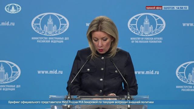 Брифинг официального представителя МИД России М.В.Захаровой по текущим вопросам внешней политики