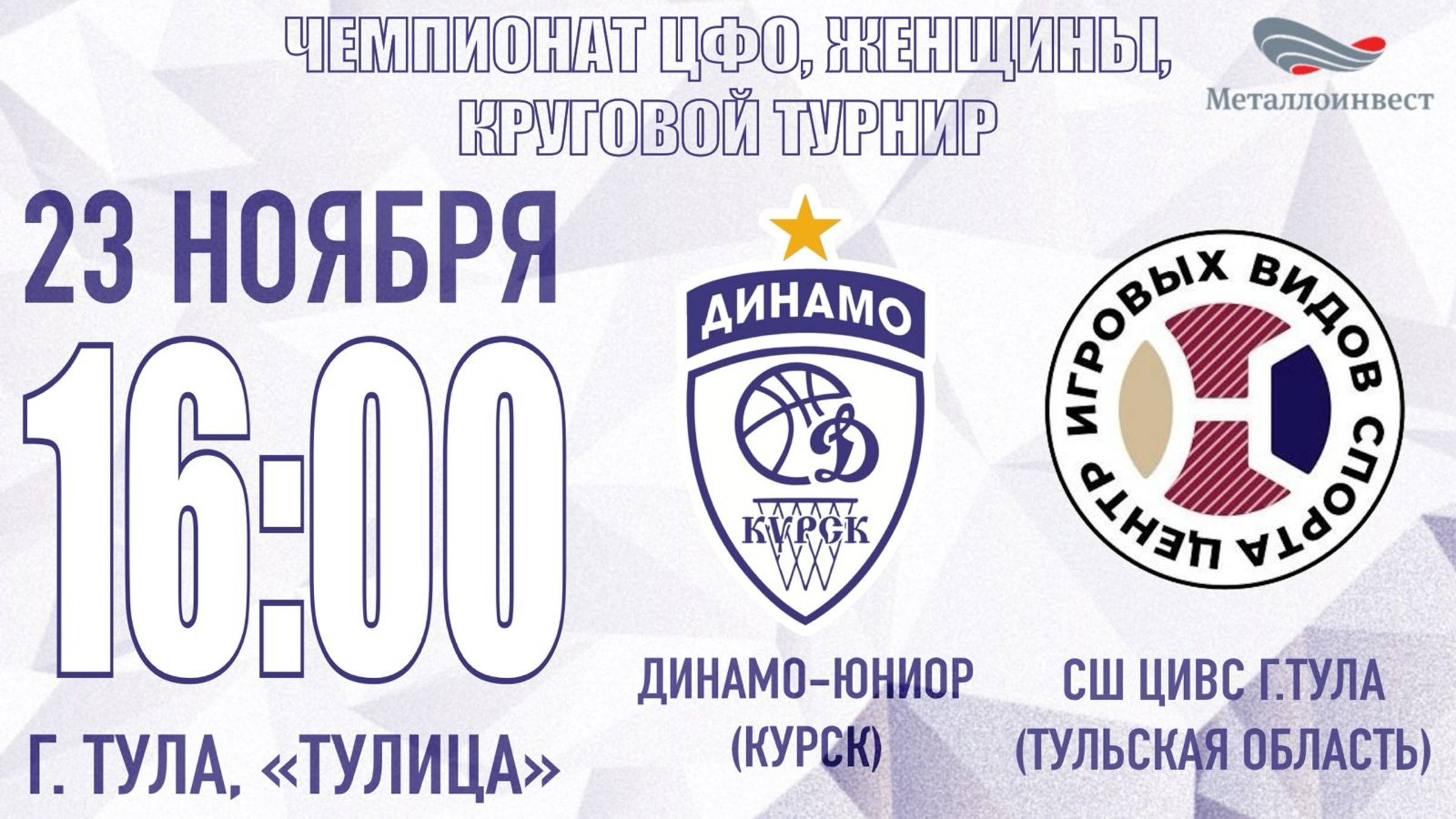 23.11.2024 16:00 Динамо-Юниор (Курск) - СШ ЦИВС г. Тула (Тульская область)