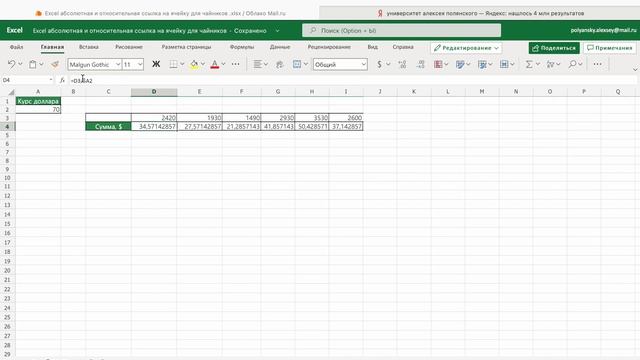 Excel абсолютная ссылка на ячейку или другой лист