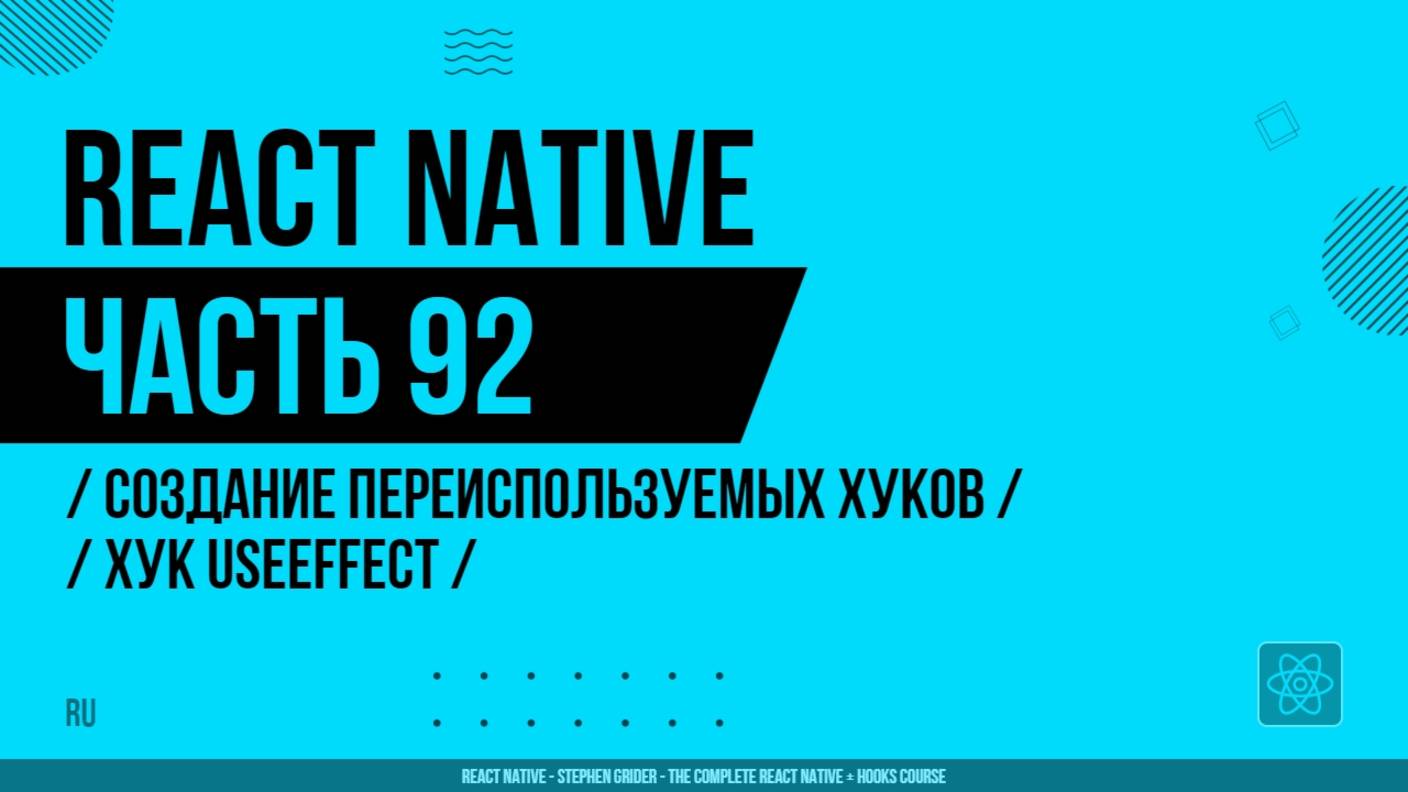 React Native - 092 - Создание переиспользуемых хуков - Хук UseEffect