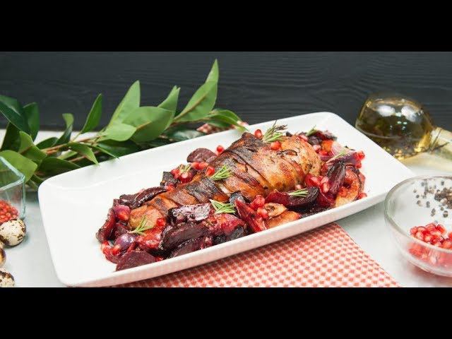 Запечённая голень индейки в беконе со свёклой и сливами | Ужин? Не проблема!