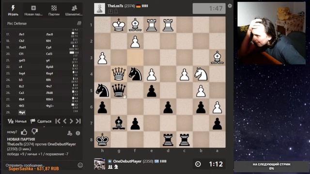 Друзья, всем привет. Партия со стрима, представляю вашему вниманию. Шахматы. Блиц 3+0 на chess.com. Если интересно, - подписывайтесь на канал, ставьте лайки, оставляйте комментарии. Поддержка через: DonationAlerts: https://www.donationalerts.com/r/onedebutplayer Бусти: https://boosty.to/onedebutplayer/donate Donatepay: https://new.donatepay.ru/@1272445