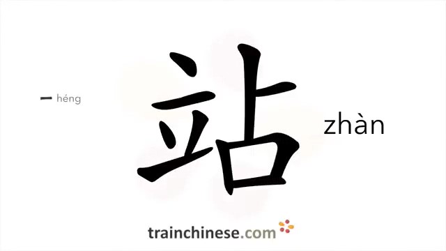 站 (zhàn) station; to stand; to halt, stop; branch of a company or organization; website*