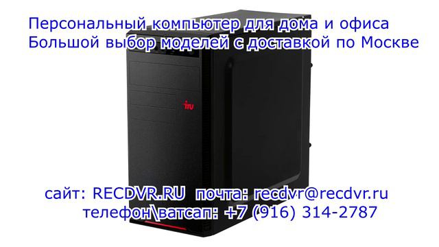 https://recdvr.ru/product/personalnyj-kompjuter-dlja-doma-i-ofisa-intel-celeron-3-5-ggc-wifi-ram-8-gb-ssd-disk-240-gb - Хороший ПК для дома или работы в офисе. Доставка по Москве, Подмосковью и всей России. Представляем вашему вниманию отличный вариант настольного персонального компьютера в чёрном цвете корпуса для использования как в домашних условиях, так и на работе в офисе. В своём оснащении имеет: процессор intel celeron с частотой 3,5 ГГц, оперативную память в размере 8 ГБ и быстрый SSD диск объёмом 240 Гб. Подключиться к локальной сети или роутеру вы можете как проводным, так и беспроводным способом при помощи wi-fi. Вместе с ПК вы получаете беспроводной комплект, состоящий из мышки и клавиатуры.