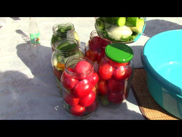 Ассорти из огурцов, кабачков, томатов Томаты в томатном соке