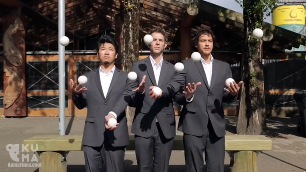 Трое мужчин в костюмах умеют отлично жонглировать. Музыка: Televisor - Deya (feat. Patrick Baker)