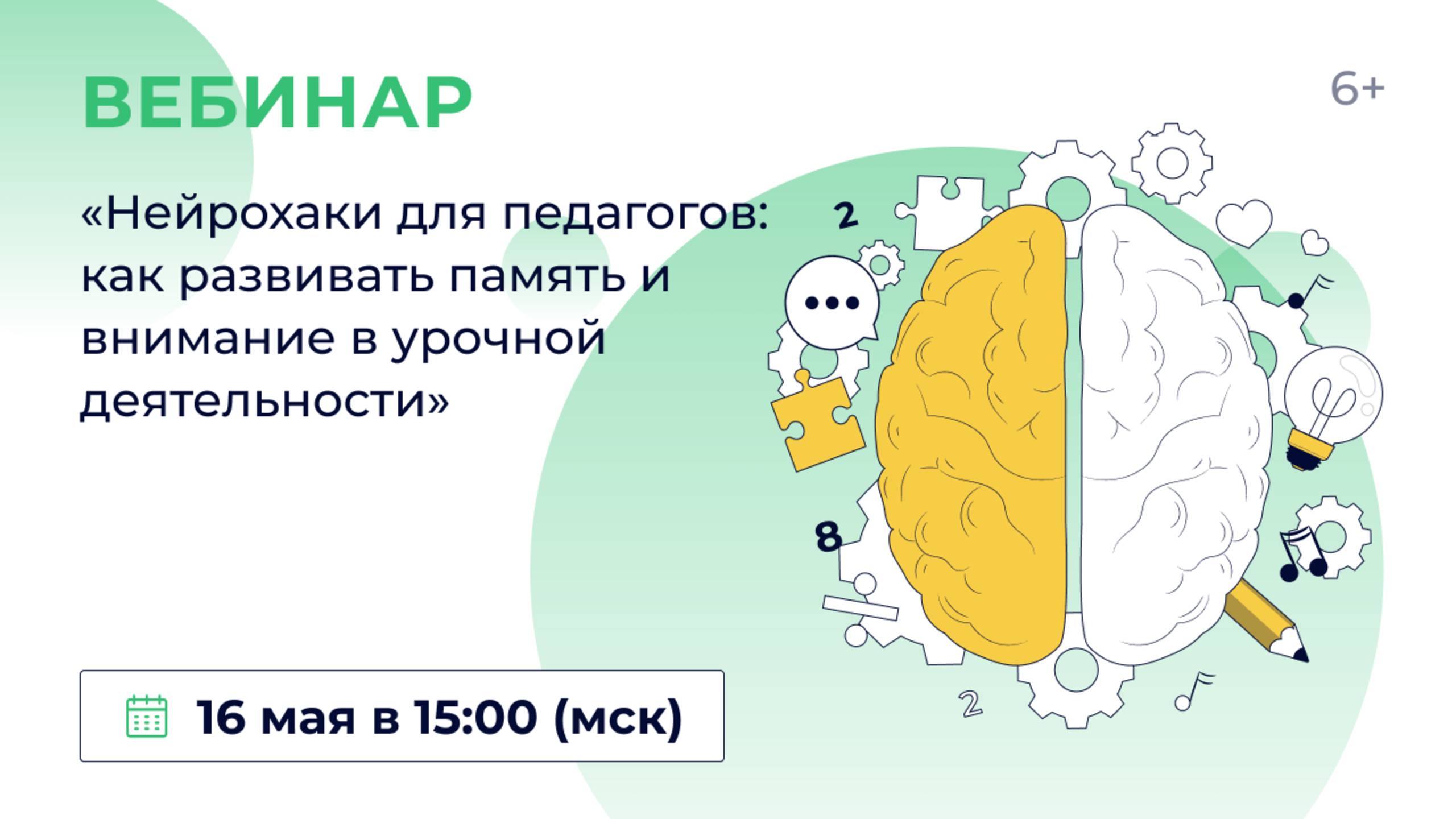 00:00 | Вступление 02:00 | начало 07:00 | как работают память и внимание с точки зрения нейронауки; какие методы запоминания работают даже у самых рассеянных учеников; 17:06 | какую роль в обучении играют эмоции и многозадачность и почему гаджеты мешают концентрации и запоминанию; 18:00 | как использовать практические нейрохаки для развития концентрации внимания 16 мая в 15:00 (мск) приглашаем учителей, преподавателей организаций СПО, методистов, педагогов дополнительного образования, администрацию образовательных учреждений и представителей ИРО на вебинар «Нейрохаки для педагогов: как развивать память и внимание в урочной деятельности». Нейрохаки — это простые, но эффективные приёмы, основанные на знаниях о работе мозга. Они помогают улучшить концентрацию внимания, запоминание материала и вовлечённость обучающихся в учебный процесс. На вебинаре вы узнаете: - как работают память и внимание с точки зрения нейронауки; какие методы запоминания работают даже у самых рассеянных учеников; - какую роль в обучении играют эмоции и многозадачность и почему гаджеты мешают концентрации и запоминанию; - как использовать практические нейрохаки для развития концентрации внимания; - как применять игровые техники и приёмы для вовлечения обучающихся. В практической части эфира отработаем мнемотехники (техника «Чанкинг», методика «N-back») и упражнения, направленные на развитие внимания, разберём практику антиотвлекающих стратегий и многое другое. Спикер: Ольга Владимировна Чурсинова, кандидат психологических наук, доцент, заведующий кафедрой психолого-педагогических технологий и менеджмента в образовании ГБУ ДПО «Ставропольский краевой институт развития образования, повышения квалификации и переподготовки работников образования», почётный наставник в сфере образования Ставропольского края. Модератор вебинара — Олеся Гончарова, кандидат исторических наук, ведущий методист «ЯКласс». Участие в вебинаре бесплатное.