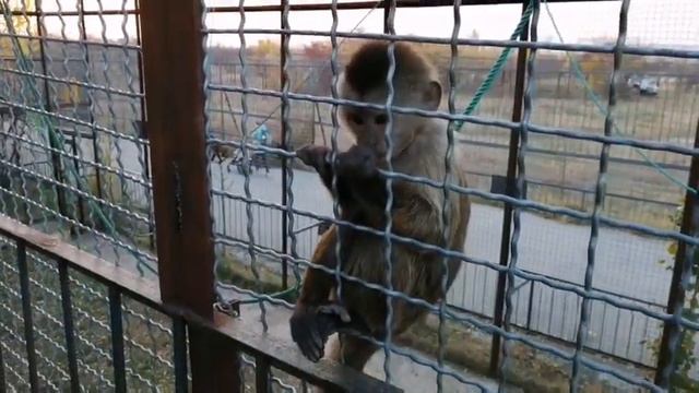 Парк Тайган! Обезьяна захотела стащить пакет с семечками от тыквы!))