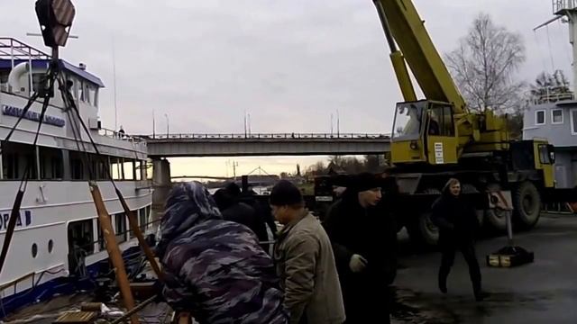 Клуб Юных Моряков. Окончание навигаци. Достаем яхту на зимнее хранение из воды на стапеля.mp4