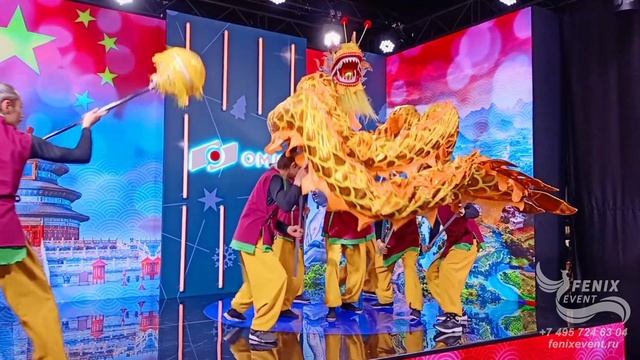 Танец китайского дракона на праздник и мероприятие в Москве - заказать китайское шоу золотой дракон