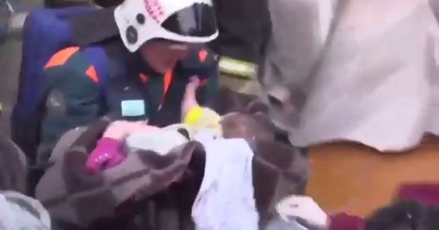 Через полтора дня с момента обрушения дома в Магнитогорске спасатели достали из-под завалов 11-месячного ребенка. Он жив. Младенец пережил взрыв и морозную ночь. Его передали на попечение медиков. #магнитогорск #спасение #ребенок #младенец