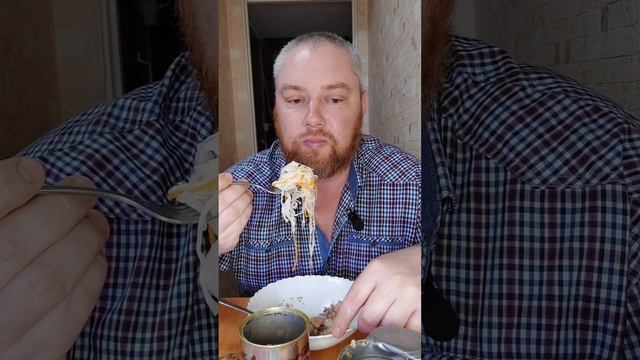Мукбанг. Консервированная гречка и свинина. #мукбанг