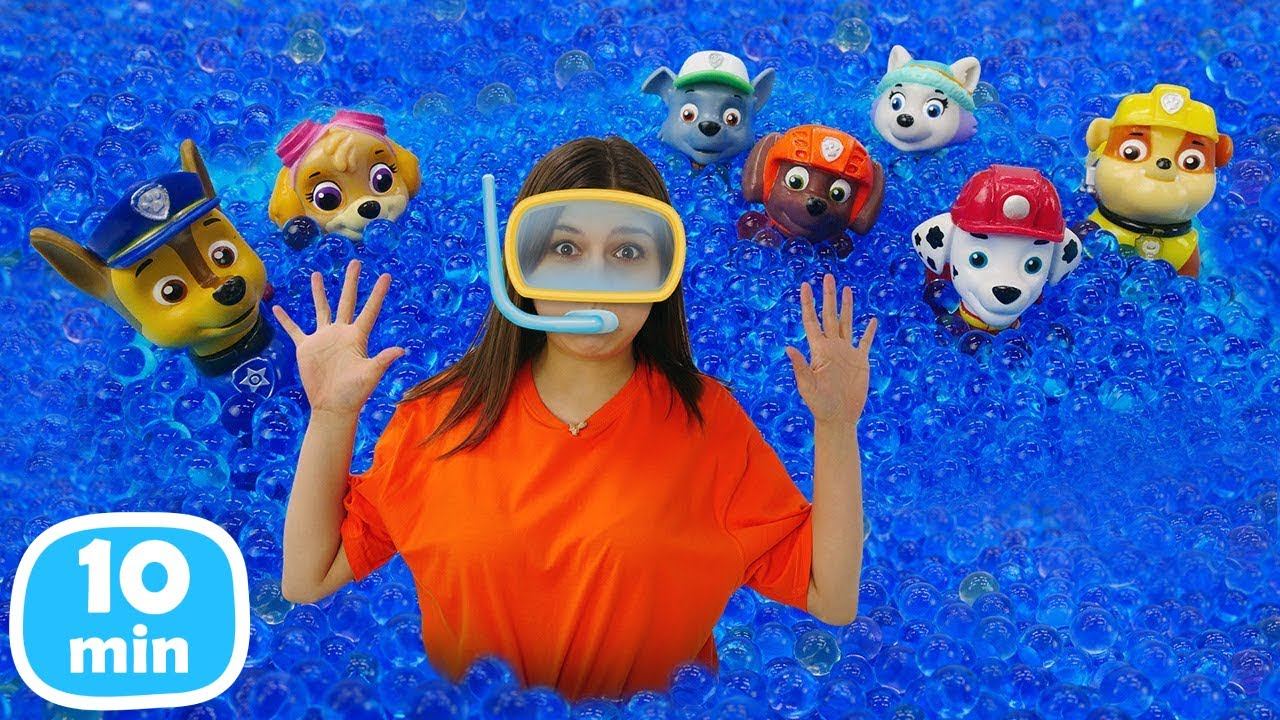 Ищем игрушки Щенячий патруль в аквапарке и на пляже! Детское шоу Тойклаб