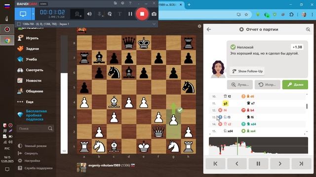 Шахматы -Заочка с Вованом _эксперимент не удался