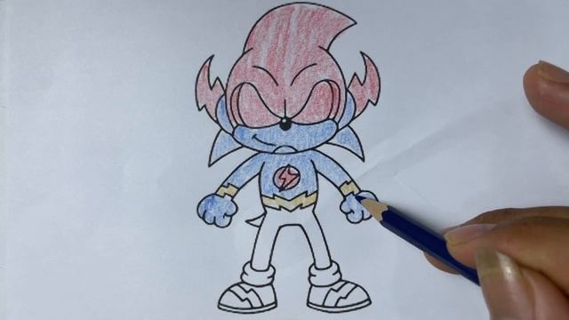 Complete the coloring picture of the cartoon character Sonic the Hedgehog in a lightning costume
