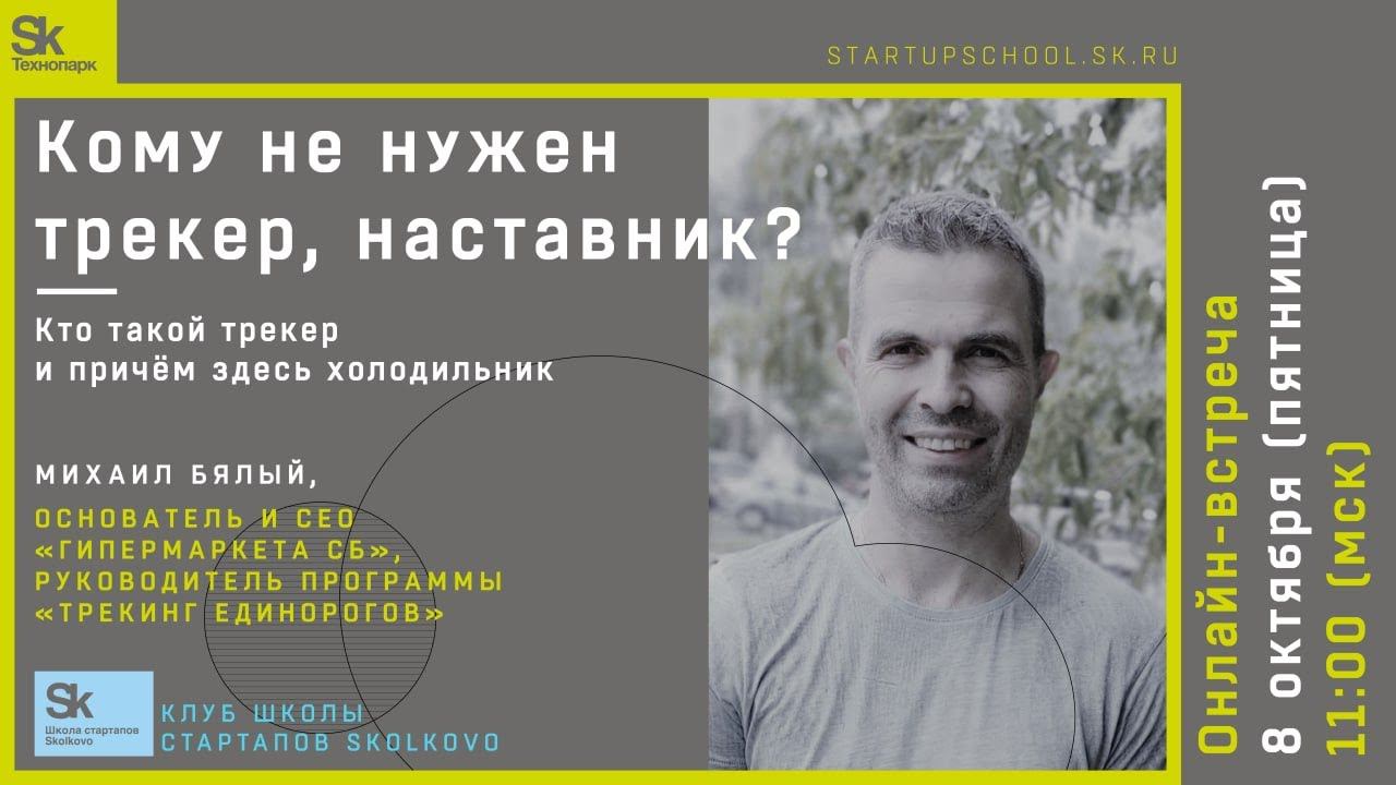 О чём поговорим? • Кто такой трекер и причём здесь холодильник • Трекер – это роль • Кому трекинг не нужен • Как оценить работу трекера и сколько стоит трекер • Трекер глазами стартапа Спикер: Михаил Бялый, основатель и CEO «Гипермаркета систем безопасности», руководитель проекта «Трекинг единорогов».