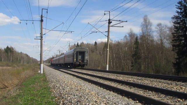 Электровоз ЭП20-002 с поездом Варшава-Москва, участок Колесники-Батюшково, 14:18-14:19, 01 05 2017