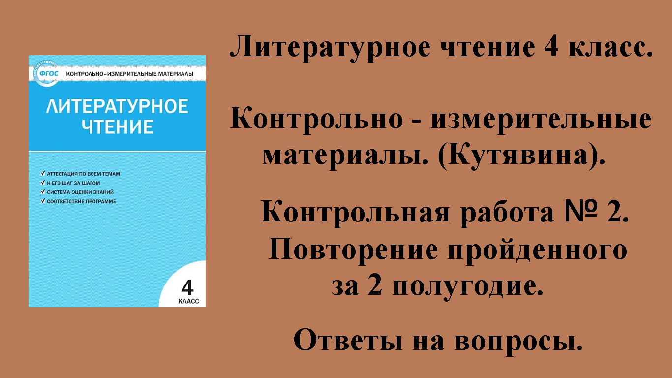 ГДЗ решение контрольно - измерительные материалы литературное чтение 4 класс (Кутявина). Контрольная работа № 2. Повторение пройденного за 2 полугодие. Страницы 61 - 67.