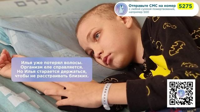 Лимфома хочет забрать Илью! Помогите спасти жизнь! Горе идёт за семьёй Долгих по пятам... У старшего сына тяжелый диагноз, ДЦП и пожизненная инвалидность. Младший Илья был абсолютно здоров, но в 9 лет узнал, что такое Рак. Сегодня, чтобы выжить и победить, Илье нужна Ваша помощь. Но времени у него критически мало! Спасите! Илья Долгих, г. Санкт- Петербург Диагноз: Лимфобластная лимфома. (рак). Необходимо: Лечение в Hadassah University Hospital (г. Иерусалим, Израиль). Сумма сбора: 2 100 000 руб. Страница Ильи на нашем сайте: https://kseniya.fund/komu-pomoch/ilya-dolgih/?FAND=rutube Рак диагностировали неожиданно и внезапно, когда семья временно проживала в Турции по работе мамы. Там срочно начали поддерживающую терапию, а потом Илью перевезли в Израиль. Он долетел едва живым. Доктор Сигаль из клиники Хадасса в Иерусалиме предложила лететь к ним за незамедлительной помощью, и они решились. Промедление могло стоить жизни, у Ильи уже буквально отказывали почки. Эти 1,5 часа полёта мальчик перенёс с трудом, 5,5 часов перелёта до Москвы он бы просто не выдержал. До Израиля же врачи лететь разрешили. В аэропорту ждал реанимобиль. Мальчика срочно доставили в отделение интенсивной терапии. Сейчас Илья продолжает получать лечение в Израиле и оно эффективно. Но, к сожалению, его не чем оплатить, перед клиникой уже долги. Без лечения мальчик обречён... Онкология разлучила семью, теперь больны оба сына Долгих. Это ужасающее двойное горе... Онкология беспощадна. Болезнь не знает, что такое жалость. Илья уже потерял все волосы. Организм еле справляется, но бедный истерзанный ребёнок изо всех сил старается держаться, чтобы не расстраивать близких. "Он очень сочувствующий и трепетный мальчик, потому, что он у нас родился в семье, где воспитывается ребёнок-инвалид. У нас старший сын с диагнозом ДЦП и эпилепсия. И Илья помогает с рождения брату. Иногда просто своим присутствием и добрым ласковым взглядом. Он очень заботливый и терпеливый. Пожалуйста, не бросайте его умирать!". Мама. Если оставить Илью сейчас без поддержки, его не пощадит РАК. Он заберёт сына из семьи! В клинике копится долг, Илье всё тяжелее. На счету каждая минута! Помогите! Выберите удобный способ пожертвования у нас на сайте: https://kseniya.fund/komu-pomoch/ilya-dolgih/?FAND=rutube Отправьте СМС: - на номер 3434 со словами «Лечим Илью» и любой суммой. Пример: Лечим Илью 250; - на номер 5275 и в сообщении укажите цифрами сумму пожертвования в рублях. Пример: 250. Банковские реквизиты: Получатель платежа: Благотворительный фонд «Ксения Спасает Жизни» ИНН 7814779325 КПП 781401001 ОГРН 1207800101497 ПАО «Сбербанк» Р/с 40701810755000000688 Банк: Северо-Западный банк ПАО Сбербанк БИК: 044030653 К/с 30101810500000000653 Назначение платежа: Благотворительное пожертвование для Ильи Долгих. #илья #charity #рак #лимфома #онкология #победа #ракдурак #илюша #сынок #ксенияспасаетжизни