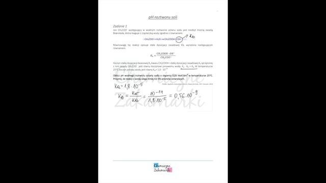 Maturalna powtórka z chemii - obliczanie pH roztworu soli