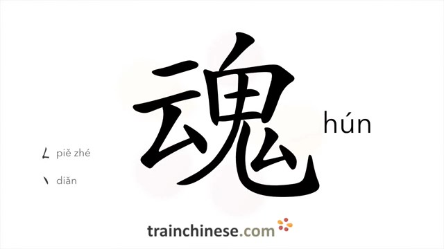 魂 (hún) soul, spirit; (immortal soul, i.e. that can be detached from the body)