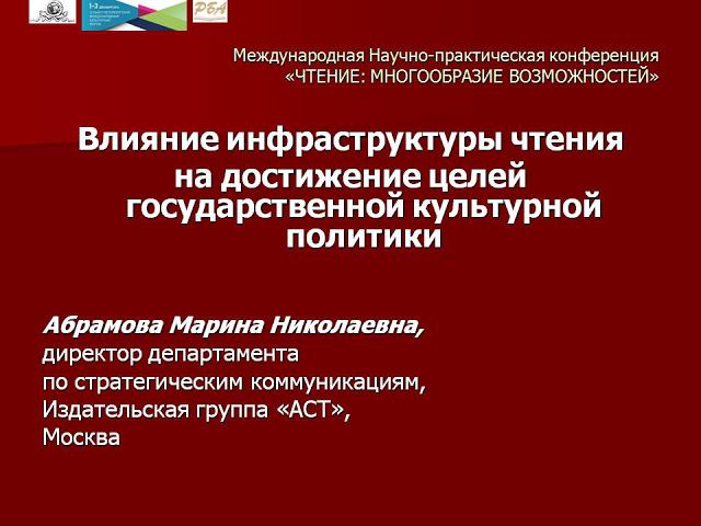Влияние инфраструктуры чтения на достижение целей государственной культурной политики