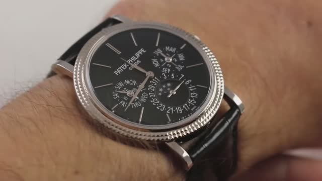 *перевести видео можно в Яндекс браузере Модель Patek Philippe 5139G с вечным календарем, впервые представленная на выставке Baselworld 2008, была обновлена в 2011 году благодаря наличию в этой модели черного лакированного циферблата. Компактные часы диаметром 38 мм и тонкие при толщине 9 мм. Длина циферблата от выступа до выступа составляет 45,2 мм. Ознакомьтесь с нашим полным обзором для получения более подробной информации!
