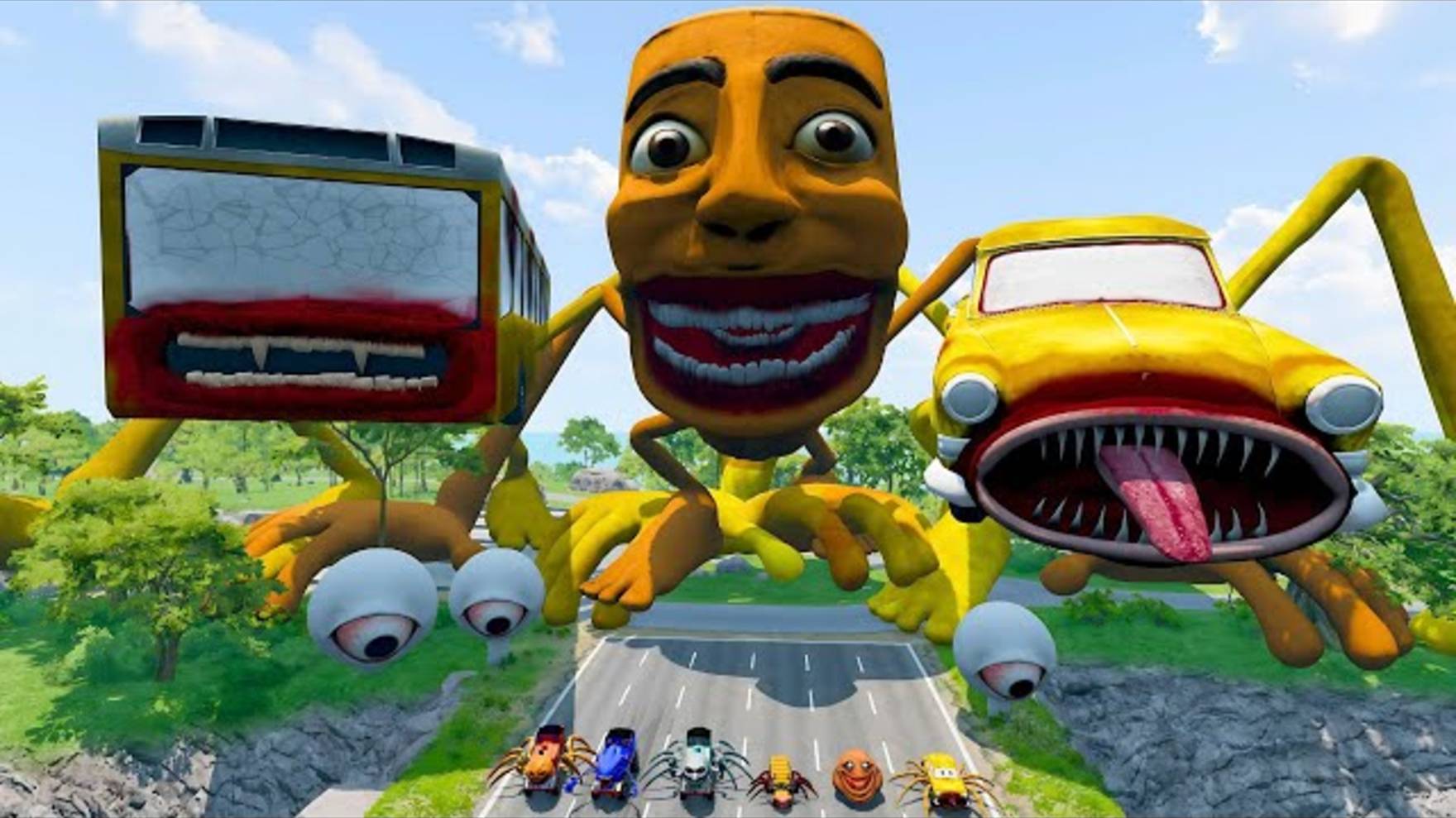 СПРУНКИ майнкрафт мультфильм ВСЕ МОНСТРЫ , большие и маленькие машины , с ПОЖИРАТЕЛЕМ ТУНГ – ТУНГ - ТУНГ САХУР , ПОЖИРАТЕЛЕМ АВТОМОБИЛЕЙ И АВТОБУСОВ - BeamNG Drive