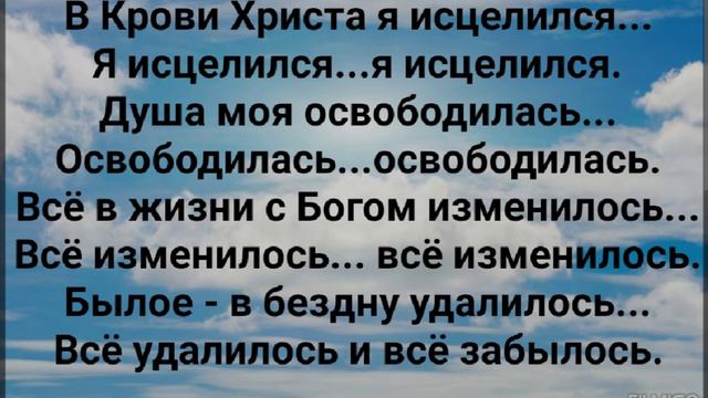 ХРИСТИАНСКИЕ ПЕСНИ ДЛЯ ХВАЛЫ И ПОКЛОНЕНИЯ ПРОСЛАВЛЕНИЯ ВООДУШЕВЛЕНИЯ #господь#музыка#христианская_музыка#музика#христианскиепесни#бог#христианскиестихи#любовь#христианство#стихи#песня#песни#иисус#иисусхристос#иисусмойбог#иисус_христос#иисусбог#иисусгосподь#хвалы_и_поклонения#хваление#хвала#прославление "В КРОВИ ХРИСТА Я ИСЦЕЛИЛСЯ!" СЛОВА, МУЗЫКА: ЖАННА ВОЛКОВА-ВАРЛАМОВА Стихи Жанна Волкова(Варламова) Припев: В Крови Христа я исцелился... Я исцелился...я исцелился. Душа моя освободилась... Освободилась...освободилась. Всё в жизни с Богом изменилось... Всё изменилось... всё изменилось. Былое - в бездну удалилось... Всё удалилось и всё забылось. Душа моя чиста...она свободна... Парит над миром высоко. Как  Голубь мира, окрыленный, С красивой белой головой. Припев: В Крови Христа я исцелился... Я исцелился...я исцелился. Душа моя освободилась... Освободилась...освободилась. Всё в жизни с Богом изменилось... Всё изменилось... всё изменилось. Былое - в бездну удалилось... Всё удалилось и всё забылось. Душа моя чиста...она свободна... Парит над миром высоко. Как  Голубь мира, окрыленный, С красивой белой головой. Припев: В Крови Христа я исцелился... Я исцелился...я исцелился. Душа моя освободилась... Освободилась...освободилась. Всё в жизни с Богом изменилось... Всё изменилось... всё изменилось. Былое - в бездну удалилось... Всё удалилось и всё забылось. Душа моя чиста...она свободна... Легко на сердце, хорошо. Ведь, Бог живой, и, что угодно, Возьмёт с души и даст покой. Припев: В Крови Христа я исцелился... Я исцелился...я исцелился. Душа моя освободилась... Освободилась...освободилась. Всё в жизни с Богом изменилось... Всё изменилось... всё изменилось. Былое - в бездну удалилось... Всё удалилось и всё забылось. Душа моя  чиста...она свободна... Покров на мне Его Святой... Я прикоснусь к Нему... Да, будет больно. Зато, легко и хорошо! Припев: В Крови Христа я исцелился... Я исцелился...я исцелился. Душа моя освободилась... Освободилась...освободилась. Всё в жизни с Богом изменилось... Всё изменилось... всё изменилось. Былое - в бездну удалилось... Всё удалилось и всё забылось. Жанна Волкова-Варламова  05.11.2019