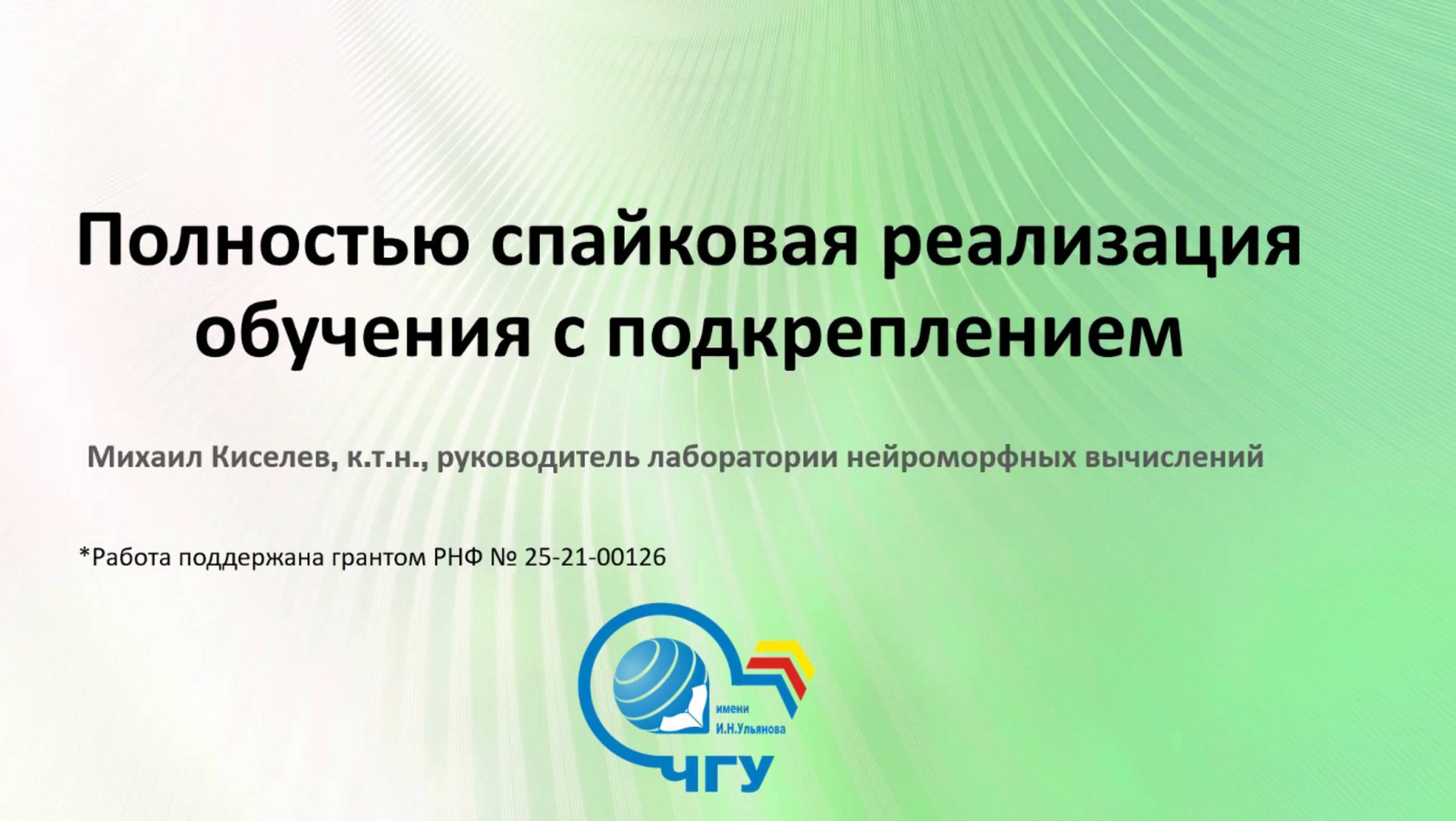 Полностью спайковая реализация обучения с подкреплением - Михаил Киселев (Чувашский государственный университет, Лаборатория нейроморфных вычислений) 13 января 2025 17:00 мск Семинар русскоязычного сообщества AGI https://www.researchgate.net/profile/Mikhail-Kiselev-5 Также смотрим видео в https://vk.com/video/@agirussia https://rutube.ru/channel/24279932/ https://www.youtube.com/siberai Мы ведем группы и организуем семинары русскоязычного сообщества разработчиков систем AGI (Artificial General Intelligence или Общий Искусственный Интеллект) или Strong AI (Сильный Искусственный Интеллект), а также - являющийся их частным случаем HLAI (Human-Level Artificial Intelligence или Искусственный Интеллект Человеческого Уровня). https://agirussia.org/ Группы: https://t.me/agirussianews (новостной канал) https://t.me/agirussia (основная) https://t.me/agitopics (различные темы по группам) https://t.me/agibots (разговорный интеллект) https://t.me/agifintech (финансовые технологии) https://t.me/collectivei (коллективный интеллект) https://vk.com/agirussia (основная) https://www.facebook.com/groups/agirussia (основная) https://www.facebook.com/groups/socialintelligence (коллективный интеллект) https://groups.google.com/g/agirussia (рассылка) Онлайн-семинары идут по четвергам, в 17:00 или 18:00 по Московскому времени. Продолжительность два часа, обычно это либо доклад на один-полтора часа и последующее обсуждение на полчаса-час либо круглый стол с регламентом на усмотрение модератора дискуссии. Технические средства проведения, регламент и модерацию обычно обеспечивает инициатор конкретного семинара либо спикер и его коллеги. Регистрация на семинары (внизу страницы): https://aigents.timepad.ru/event/1412596 Программа следующих семинаров: https://agirussia.org/workshops.html