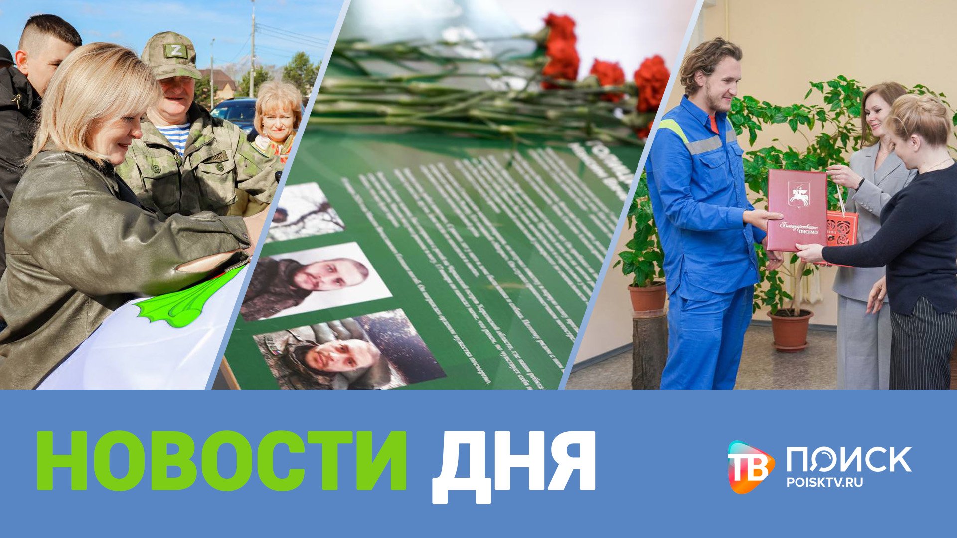 *Добросовестная работа и высокий профессионализм. В Клину поздравили с праздником сотрудников подстанции Скорой помощи. Служба впервые появилась в России 126 лет назад. *Никто не забыт, ничто не забыто. В Клину открыли еще одну парту героя. На ней имя участника специальной военной операции Максима Голицина. *Добрые дела по велению сердца. В Клину прошел очередной тимуровский слет. Ребята отчитались о проделанной работе. Самых активных наградили грамотами. *"За именами - история". В модельной библиотеке "PROзнание" подвели итоги конкурса видеороликов среди школьников. Ребята боролись за победу в двух номинациях. Об этом и не только в программе "Новости дня"