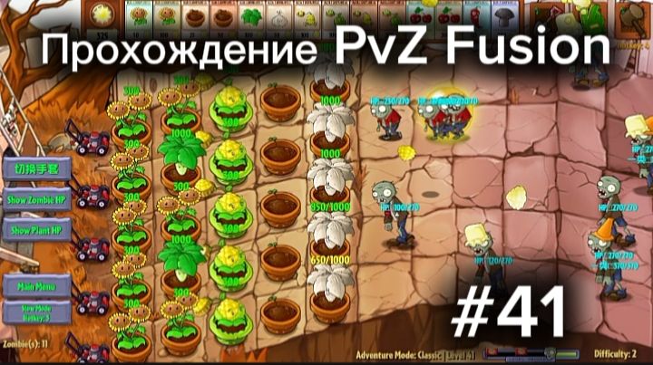 Прохождение уровня локации "Крыша" с 3 волнами в моде PvZ Fusion