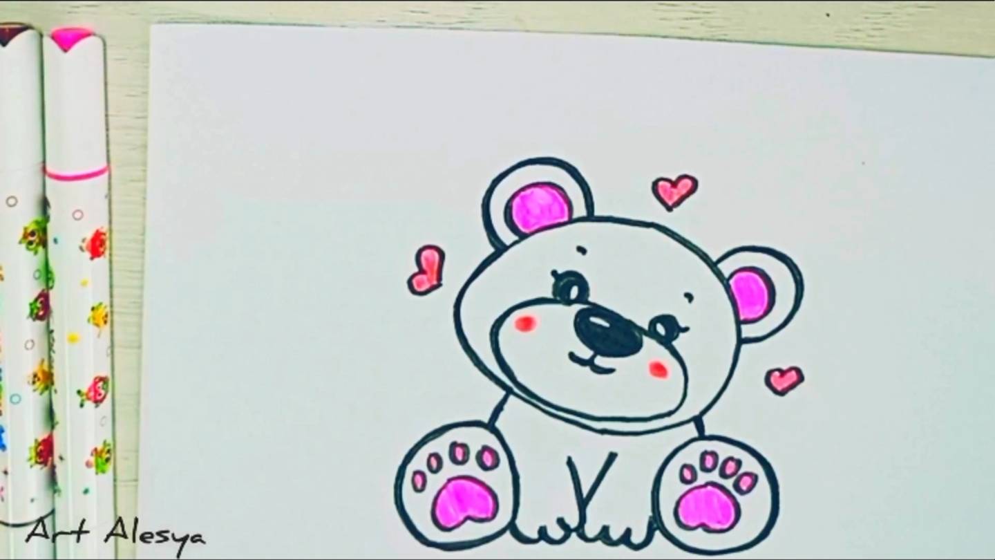 Простой красивый рисунок мишки с сердечками! Как легко нарисовать милого мишку!Простые рисунки❤️