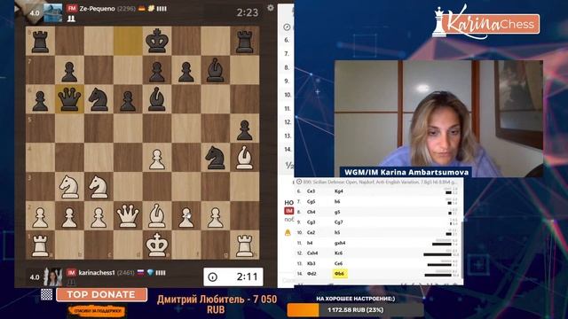 Титулованный вторник на chess.com 11 туров 3+1 Поддержать канал: https://www.donationalerts.com/r/karinachess1 Подписаться на мой канал: https://www.youtube.com/channel/UChor8u_hhgrjX2lt0QLzZHA?sub_confirmation=1 Стать спонсором канала: https://www.youtube.com/channel/UChor8u_hhgrjX2lt0QLzZHA/join Рестрим: https://www.twitch.tv/karinachess1 Рада приветствовать Вас на канале женского международного гроссмейстера, международного мастера Карины Амбарцумовой! Я - профессиональная шахматистка и тренер. Здесь вы сможете найти обучающие видеоуроки по шахматам, комментарии турниров, стримы моей игры в блиц шахматы. Подписывайтесь на мои странички в соц.сетях: ВКонтакте: https://vk.com/karinachessclub Twitch: https://www.twitch.tv/karinachess1 Почта для связи: karinachess@mail.ru Поддержать канал: https://www.donationalerts.com/r/karinachess1 Мой сайт: http://chesscoach.ru/