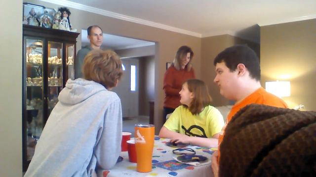 there are eating food and drinking water soda and eating cookies and Cake in the family room and the kitchen counter playing around with them and talking with them and looking at them at Joey's birthday party