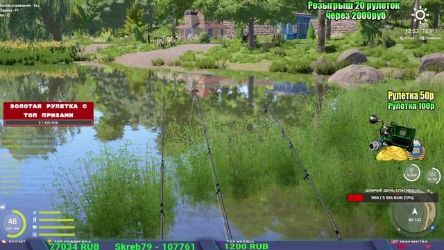 Поддержка донатом https://new.donatepay.ru/@1032463 Альтернативный донат https://www.donationalerts.com/r/kalyamba11 5536913964533059 карта Тинькоф Если стрим лагает,смотри стрим на трово https://trovo.live/s/Kalyamba_na_Ribalke Мой ВК - https://vk.com/kalyantv НИК в игре kalyan11 НАШ ДИСКОРД СЕРВЕР https://discord.gg/3ZeEDGs5h6 Заказ водоема на 1 час - 500р ( весь стрим 2500р ) Модерка на канале 1300р ( каждая следующая на 100р больше) ✅Призы в рулетке "ЗОЛОТАЯ" 500р ✔ ЗОЛОТО ✔ ПРЕМ ✔ КАТУШКИ РАПТОР 40, ВЕНГИ, ТАЙГА, СИЛЬВЕР 80, И другие ✔ ПАЛКИ ПИЛКЕРНАЯ, ДОНКА МОРСКИЕ, ✔ РОД ПОД, СТУЛЬЯ ✅Призы в рулетке СТАНДАРТ : 100р ✔ катушкИ РАПТОР 40, ВЕНГИ, ТАЙГА, СИЛЬВЕР 80, И другие ✔ катушки 60 для медного ( ЭВИИ, НАТОРЫ, ГОЛДА, и тд) ✔ ПИЛКЕРНОЕ УДИЛИЩЕ КОРОЛЕВА ОКЕАНА ✔ Морское Донное удилище ✔ прем ( 3, 7, 30 дней) ✔ золото ( 1, 3, 5, 10, 20 ,50) ✔ билет на море ( 1, 3, 5 дней) ✔ голд наживка и др. ✅Призы в рулетке "СТАРТОВАЯ" 50р ✔ катушка Венга ✔ катушка "silver80" ✔ катушка "БЕЛЫЙ КАЛИБР" ✔ катушка "Черный калибр" ✔ катушка "Протон" ✔ катушка "Нарга 6000" ✔ Набор Фидерист и спинингист ✔ Карповик Фортуна ✔ фидерные удилища ✔ прем, золото, алкашка, наживки и тд P.s Рулетка это не казино, а награда за поддержку стримера. Вечный ТОП ПОДДЕРЖКИ (10.06.2025) 1. Леха сварной 214 572 2. Dimon_pokemonchik 127 034 3. Skreb79 103 061 4. Interceptor 96 230 5. FishRus86 82 500