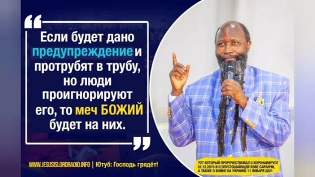 ОБЕЩАННЫЙ БОЖИЙ ПРОРОК ПОСЛЕДНЕГО ВРЕМЕНИ ДР. ДАВИД ОВУОР -------------------------------------- ГОСПОДЬ ПОСЛАЛ СВОИХ ВЕЛИКИХ ПРОРОКОВ ГОСПОДНИХ К ЭТОМУ МИРУ Чтобы нам принести правду, истинное определение и значение благодати, чтобы пробудить, восстановить и поднять церковь от большого падения , которое вошло в церковь. И чтобы нас вразумить, что время истекло и мы должны приготовиться в святости и праведности, потому что МЕССИЯ грядет! ГОСПОДЬ ГРЯДЁТ ЗА СВОЕЙ ЦЕРКОВЬЮ. ГОСПОДЬ ГОТОВИТ ЦЕРКОВЬ ЧЕРЕЗ ПРОРОКОВ БОЖИИХ К ВОСХИЩЕНИЮ КОТОРОЕ СКОРО, СКОРО, ОЧЕНЬ СКОРО ПРОИЗОЙДЕТ! • Старайтесь иметь мир со всеми и святость, без которой никто не увидит Господа. Евреям, 12:14 • И не войдет в него ничто нечистое и никто преданный мерзости и лжи, а только те, которые написаны у Агнца в книге жизни. Откр 21:27 • Побеждающий облечется в белые одежды; и не изглажу имени его из книги жизни, и исповедаю имя его пред Отцем Моим и пред Ангелами Его. Откровение, 3:5 • И кто не был записан в книге жизни, тот был брошен в озеро огненное. Откр 20:15