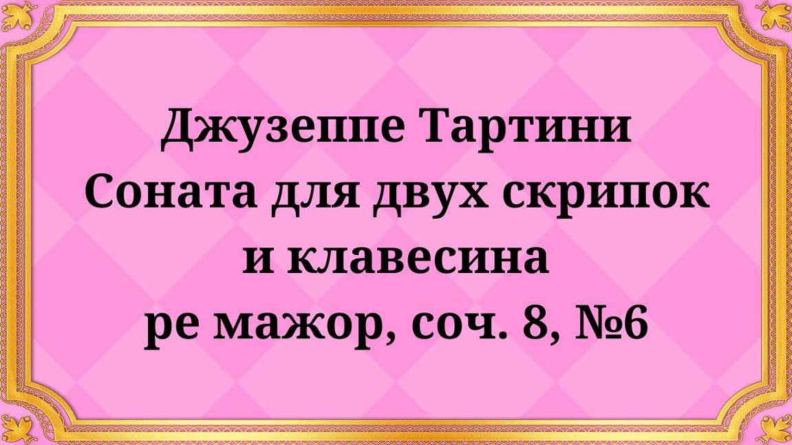 Джузеппе Тартини Соната для двух скрипок и клавесина ре мажор, соч. 8, №6