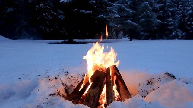 ? Музыка огня. Потрескивание костра на снегу ?