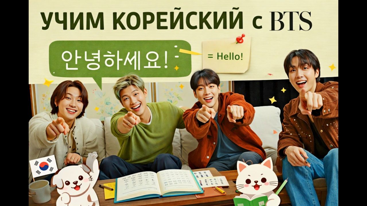 Видео «Учим корейский с BTS» (Learn Korean with BTS) для Vogue — это экспресс-урок от участников группы (Шуга, RM, Чонгук, Джей-Хоуп), где они делятся популярными корейскими фразами и советами по изучению языка. Мемберы в легкой манере учат разговорным выражениям, которые часто используют сами. Основные моменты видео (описание на русском): Участники: Шуга, RM, Чонгук и Джей-Хоуп. Фразы: В выпуске обсуждаются такие фразы, как «чинча» (진짜 — реально, правда). Советы: Намджун (RM) в шутку, но с долей истины, советует найти корейского парня или девушку для быстрой практики. Атмосфера: Веселое общение, участники рассказывают о любимых корейских фразах.