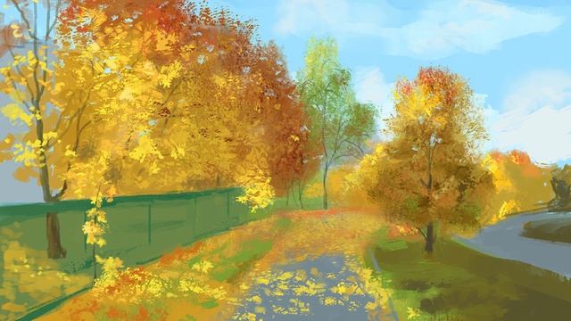 Осенний пейзаж, нарисовано в фотошопе, анимировано в афтер эффектс.