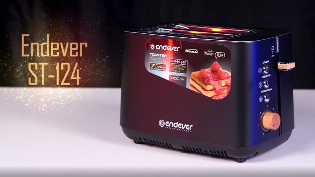 Представляем новый электрический тостер ENDEVER SKYLINE ST-124 — идеальное сочетание стиля и функциональности для вашей кухни! Мощностью 900 Вт, этот тостер не только быстро готовит, но и станет стильным дополнением интерьера благодаря элегантному черному корпусу с декоративными деревянными элементами. Два широких отсека для загрузки тостов шириной 38 мм идеально подходят для приготовления как тонких, так и толстых ломтиков хлеба. Функция автоцентрирования гарантирует равномерное поджаривание, а семь уровней степени прожарки позволяют настроить тостер под ваши предпочтения. С LED индикацией кнопок и механическим управлением тостер прост и удобен в использовании. ENDEVER SKYLINE ST-124 оснащен всеми необходимыми функциями: разморозка, подогрев, отмена и быстрое извлечение тостов. Автоматический выброс тостов и термоизолированный корпус обеспечивают безопасность и удобство, а встроенный лоток для крошек и отсек для шнура помогают поддерживать порядок. ENDEVER SKYLINE ST-124 — это современный тостер, созданный для вашего комфорта! Подробнее https://www.endever.su/catalog/toasters/endever_skyline_st_124/