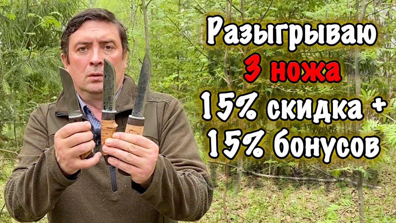 Акция (скидка 15%) распространяется только на ножи из НАЛИЧИЯ. Наличие ножей уточняйте в группе вконтакте https://vk.com/russian_bulat и у менеджеров по телефону +7 (910) 880-24-42 . Акция действует до 25.05.2021 включительно На все покупки, сделанные по акции начисляется 15% бонусов. Бонусы можно потратить с 01.06.2021 по 01.07.2021 на любой нож из наличия (но не более 30% от стоимости). По окончании акции (после 25.05 мы разыграем 3 ножа среди участников акции) Купить ножи из наличия https://vk.com/market-188086790 (все ножи в наличии) Заказать нож по телефону 8-910-880-24-42 Купить нож из наличия на сайте https://rusdamask.ru/srochnaya-otpravka-nozhej/