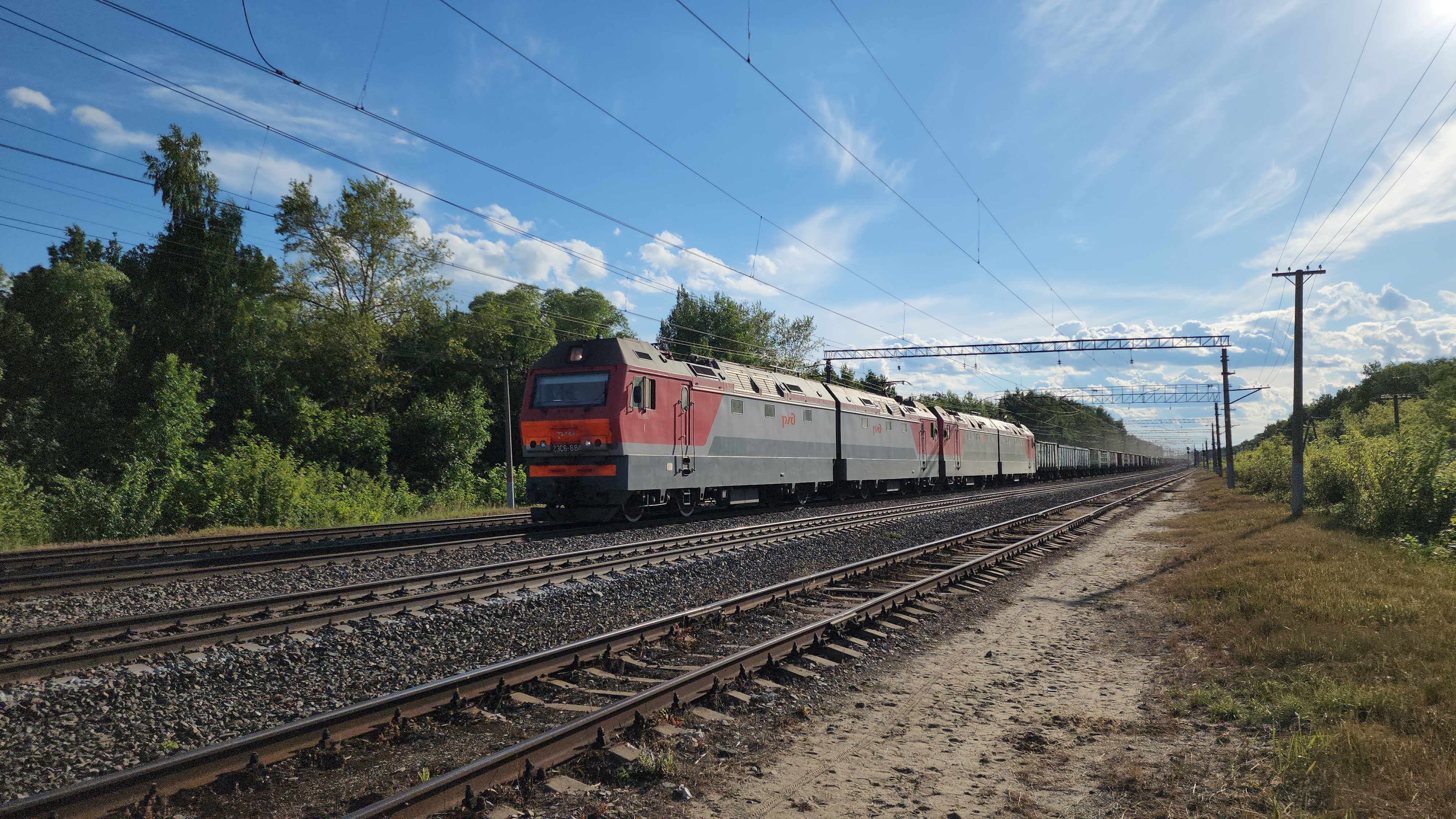 спарка 2ЭС6-684+ххх с полувагонником | Воденяпинский